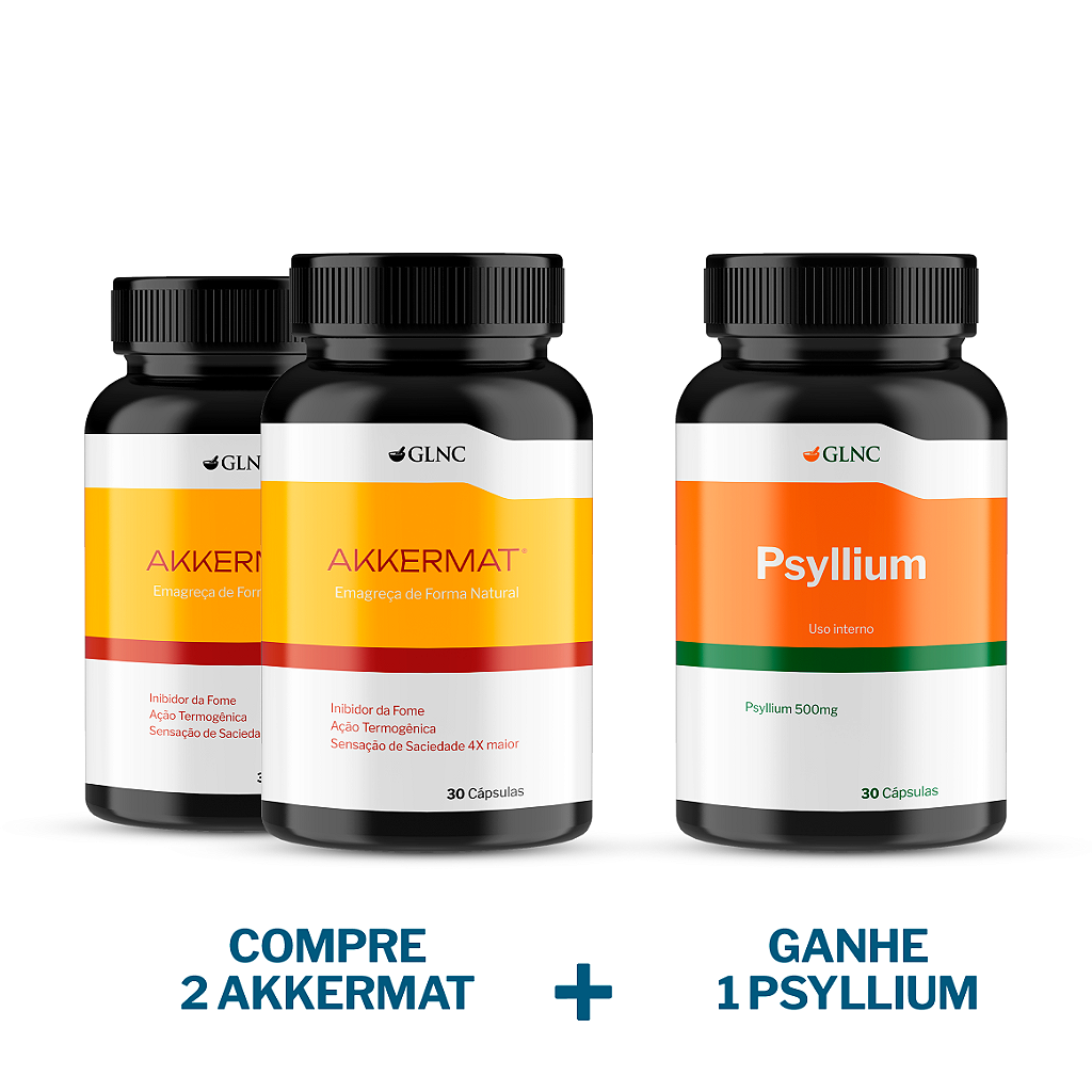 Aproveite agora: COMPRE 2 unidades de Akkermat® e GANHE 1 Psyllium totalmente grátis! 🎁