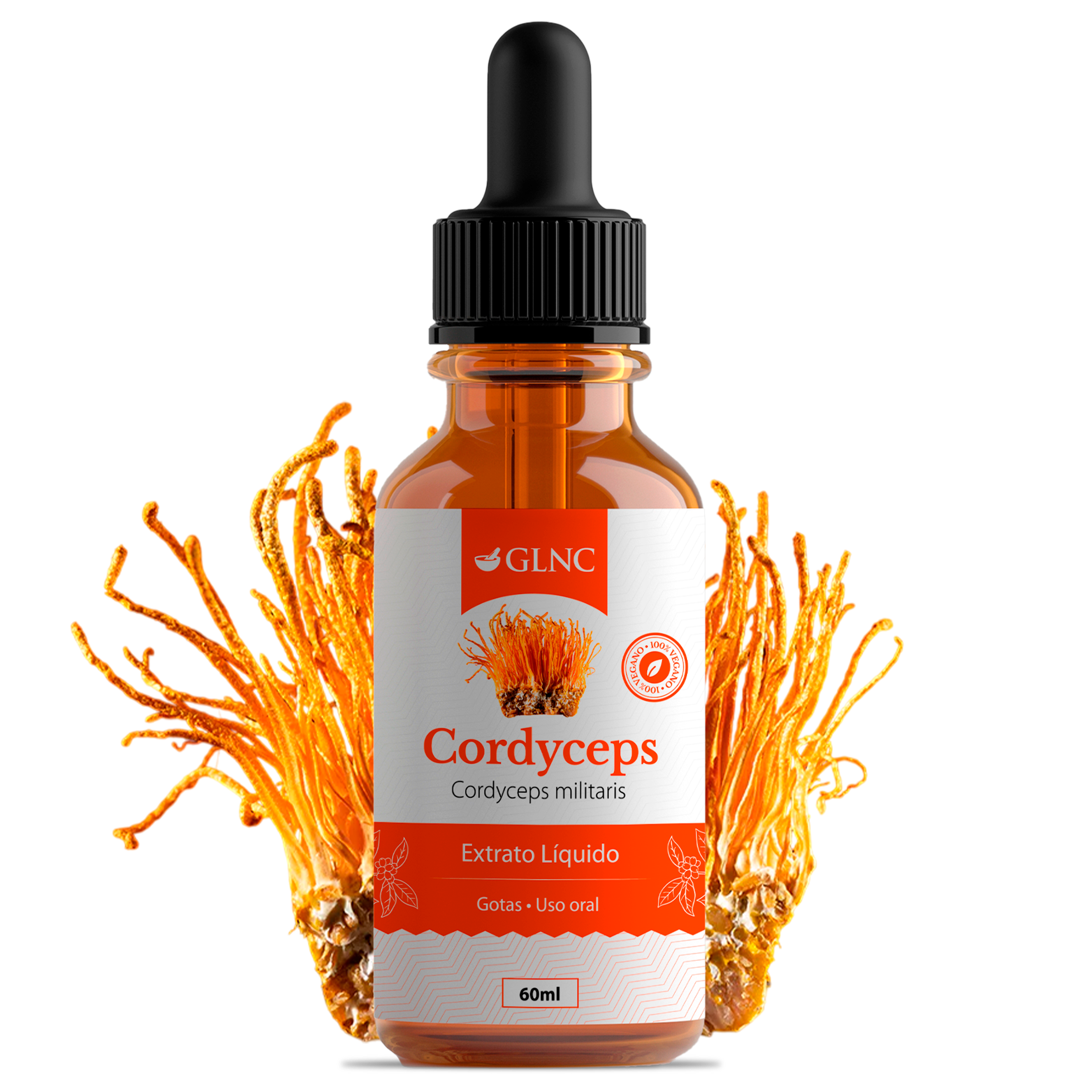 O extrato líquido de Cordyceps GLNC é feito com cogumelos 100% puros e desidratados, obtidos por extração hidroalcoólica concentrada (30 a 40% de álcool de cereais), garantindo pureza, biodisponibilidade e estabilidade.
