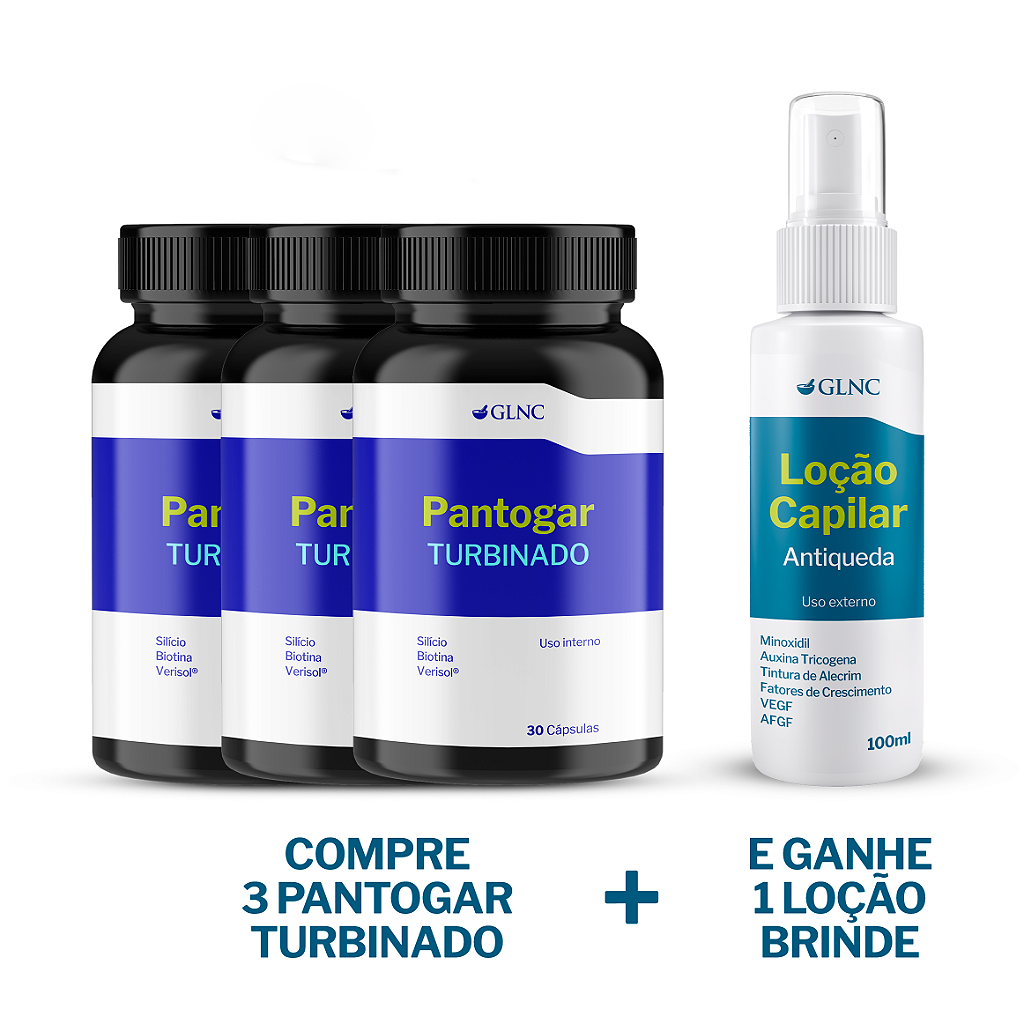 Na compra de 3 unidades de Pantogar®, você recebe 1 Loção Capilar Antiqueda totalmente GRÁTIS para potencializar seus resultados.