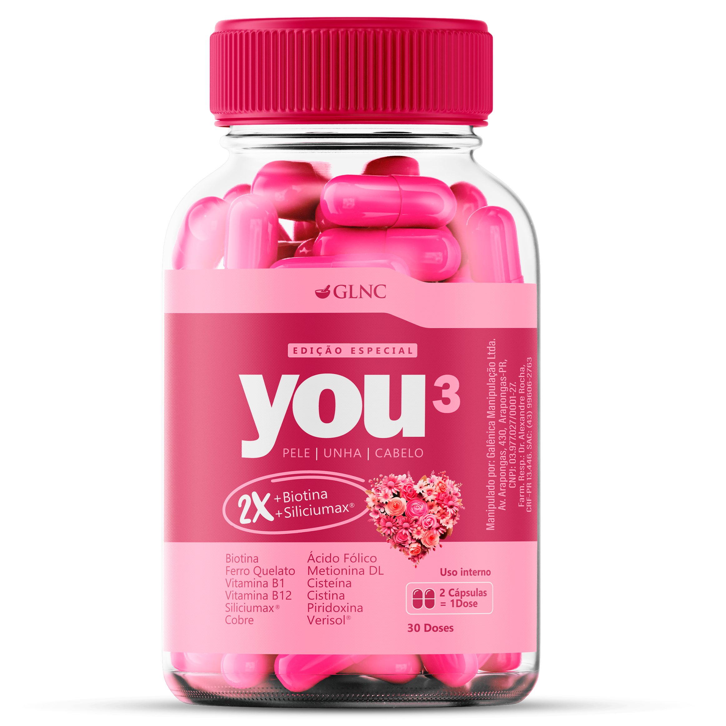 Enquanto muitos suplementos oferecem apenas doses básicas de vitaminas, o YOU3 Edição Especial entrega 2X mais Biotina e 2X mais Siliciumax em relação à fórmula original, além da adição de Cobre, um mineral essencial para a saúde dos fios e da pele.